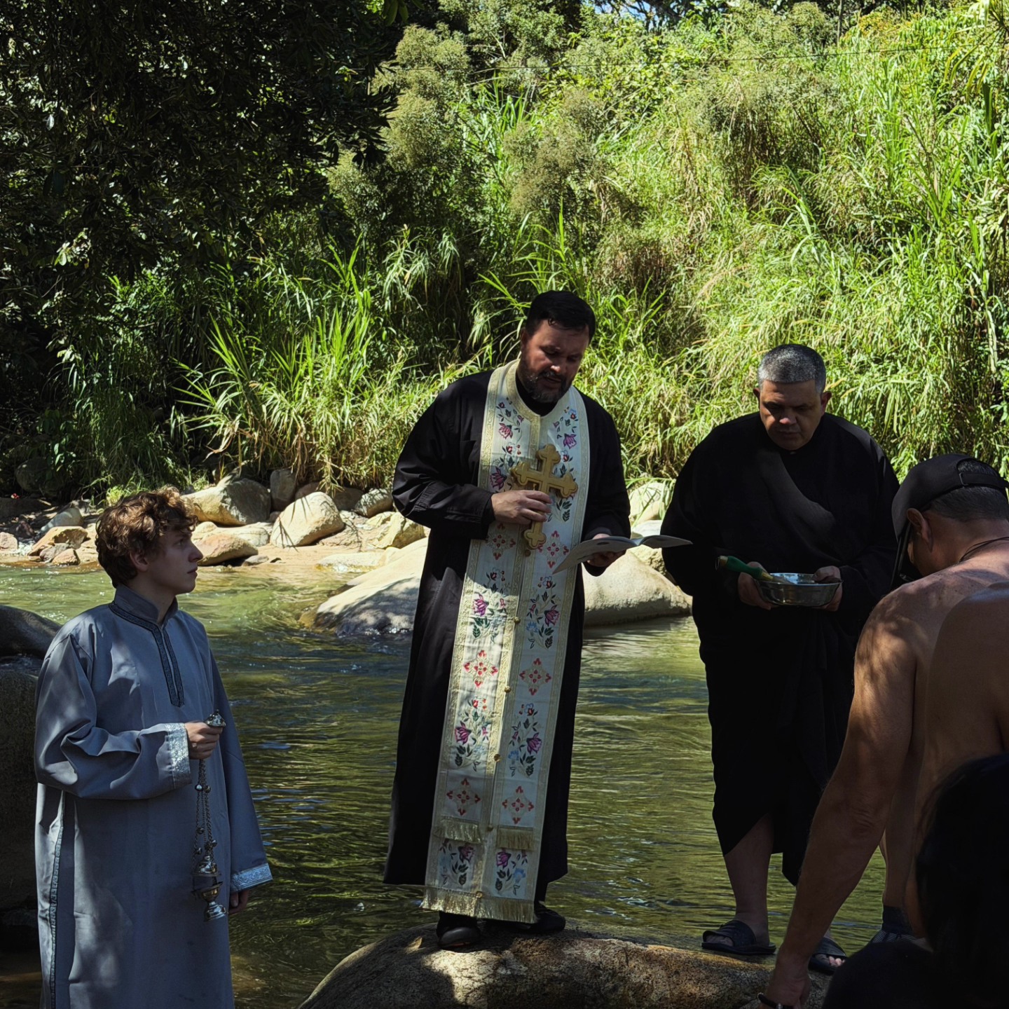 U subotu je parohijska zajednica služila Svetu liturgiju u opštini Sisneros (Cisneros), na severu kolumbijske pokrajine Antiokije. Tamo, u planinskom okruženju koje kao da neposredno svedoči o lepoti i veličanstvu Božje tvorevine, izvršeno je Veliko osvećenje voda — svešteni čin koji se tradicionalno savršava na praznik Bogojavljenja i koji podseća na Krštenje Hristovo u reci Jordanu. To nije bio zatvoren i uski obred; bila je to pravoslavna vera u živom dijalogu sa kolumbijskim pejzažom. Otac Simeon (Lopez) je, sa okupljenim vernicima, pogruzio Časni krst u vode reke, osvećujući ih, dok su se molitve na španskom jeziku uzdizale i stapale sa čistim vazduhom koji je silazio sa planinskih visova.