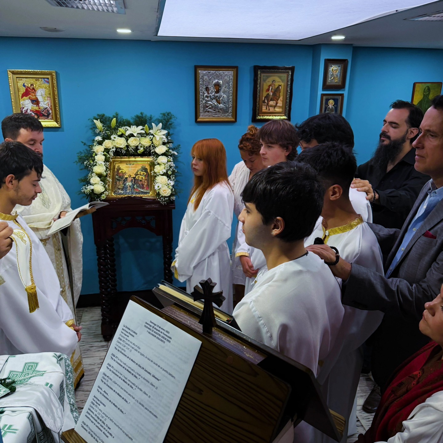 Sledećeg dana, u nedelju, svečanost se prenela u intimni prostor kuće-kapele u Belju, jednoj od četvrti grada Medeljina, gde je služena Božanstvena Liturgija praznika Bogojavljenja. Međutim, ova liturgija imala je posebne junake: šestoro mladih koji su se, tokom višemesečne katihetske pripreme, spremali da učine ovaj važan korak na svom putu obraćenja u Prvoslavlje. Njihova imena odjeknula su novom snagom: Stefan, po prvom hrišćanskom mučeniku; Jakov, po prvom episkopu Crkve u Jerusalimu; Stefan (još jedan…); Justin, po našem voljenom Svetom Justinu Ćelijskom; i Joakim i Ana, u čast roditelja naše Presvete Bogorodice Marije.