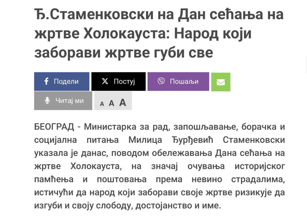 И тако смо, уместо јасног имена и дана који окупља народ, дочекали 2026. годину са безличним и бирократским називом „Дан сећања на жртве холокауста, геноцида и других жртава фашизма у Другом светском рату“, формулацијом за коју ретко ко зна, а још ређе осећа као своју. У њој су српске жртве готово невидљиве, сведене на једну од многих категорија, без имена, без гласа и без места које им по страдању припада.